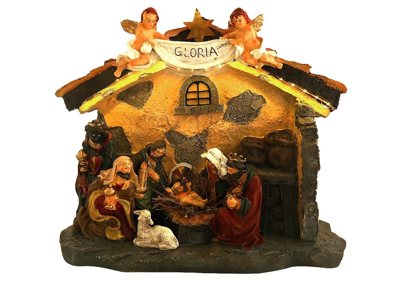 Decoratiune Craciun, Betleem, polirasina, LED, 3xAA, 36x15x29 cm