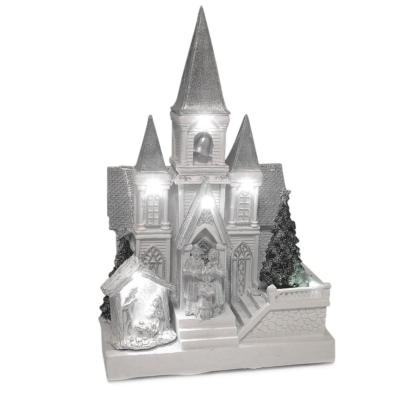 Decoratiune Craciun, Biserica cu scena Nasterea Domnului, 6 LED, 3xAA, 17x13x26 cm