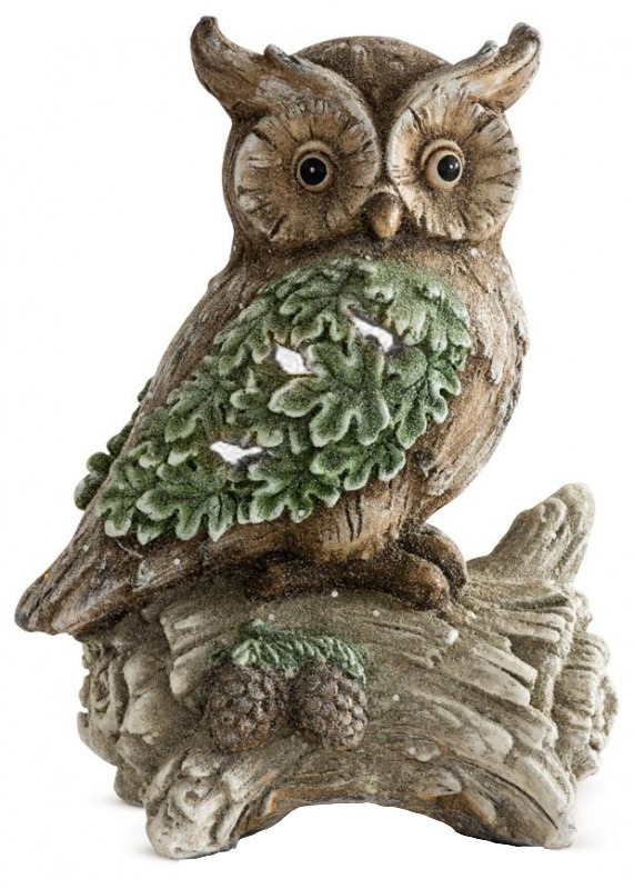 Decoratiune iarna, ceramica, bufnita pe trunchi de copac, LED, 3xAAA, 31x21x42 cm