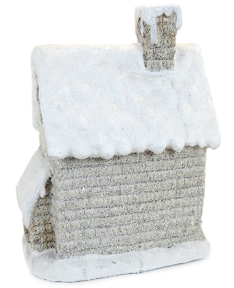 Decoratiune iarna, ceramica, casa cu ferestre luminate, alb si bej, LED, 3xAAA, 25x18x36 cm