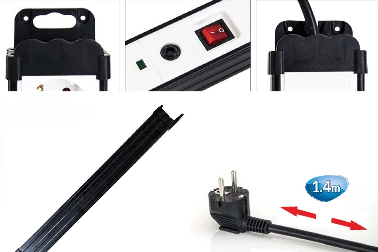 - CABLUL este cea mai importanta parte a unui prelungitor – materialul exterior al cablului este elastic si REZISTENT la temperaturi ridicate, firele sunt fabricate din material cu un procent FOARTE RIDICAT de cupru pentru o mai buna conductivitate si reduce incalzirea cablului. Permite rasuciri si indoiri frecvente.