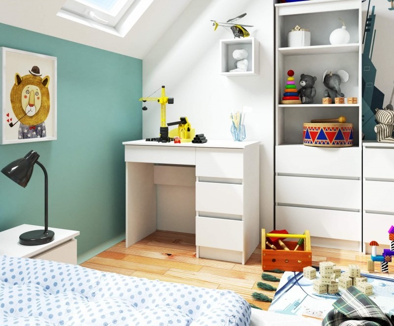 Birou calculator, placa laminata, 4 sertare, dreapta, alb, 90x50x77 cm