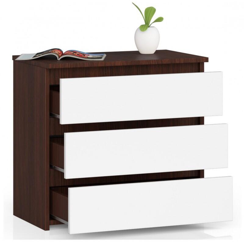 Comoda, placa laminata, 3 sertare, stejar Wenge si alb, 60x35x57 cm