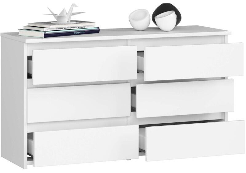 Comoda, placa laminata, 6 sertare, alb, 100x35x57 cm