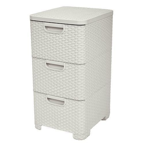 Comoda plastic, 3 sertare, imitatie ratan, alb, 32x37x63 cm, Curver