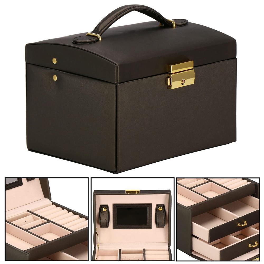 Cutie pentru bijuterii, MDF si piele, maro inchis si roz, cu oglinda, 17.5x14x12.5 cm, Springos