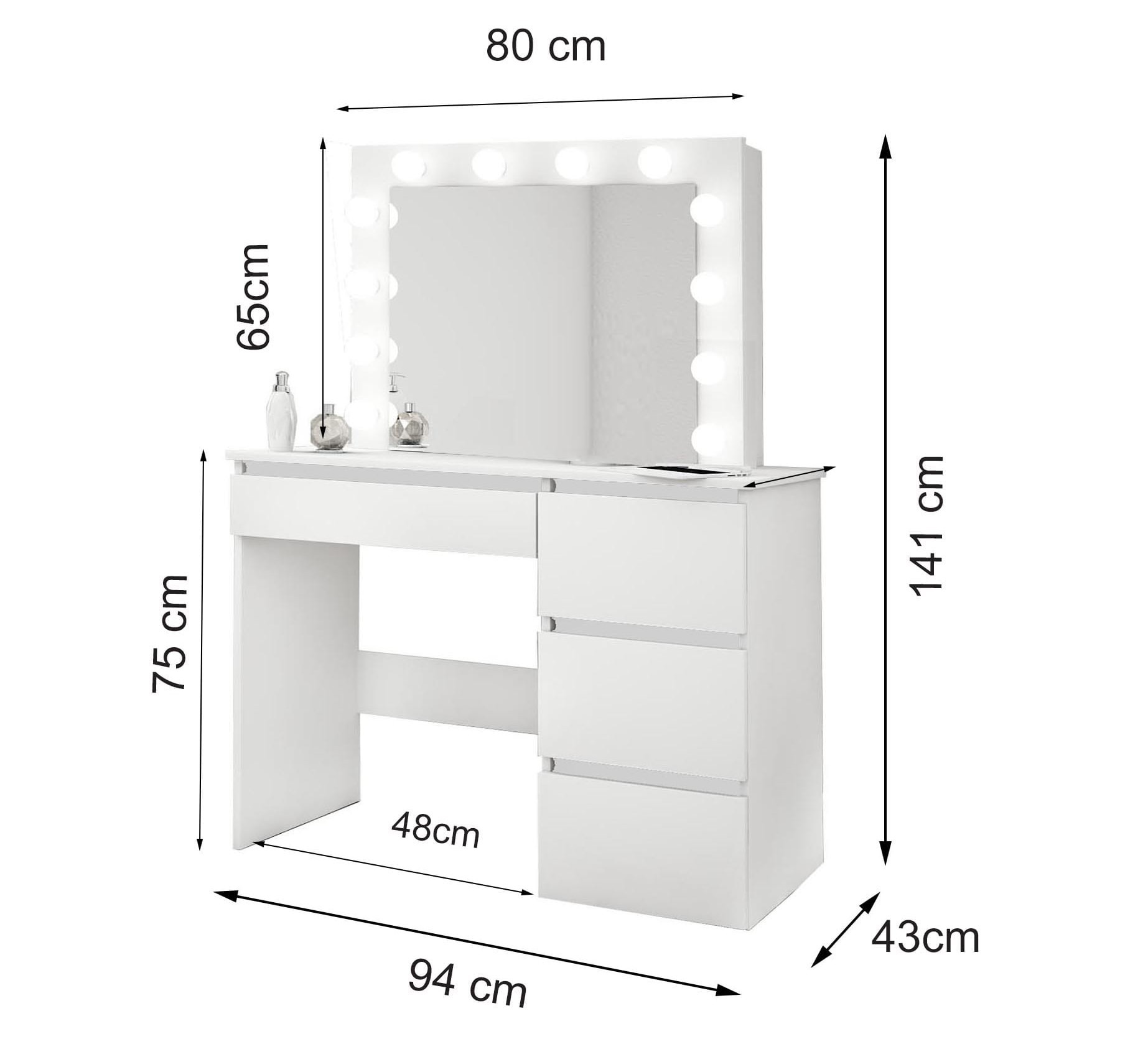 Masa de toaleta/machiaj, stejar, cu oglinda si LED-uri, Irina, 94x43x141 cm