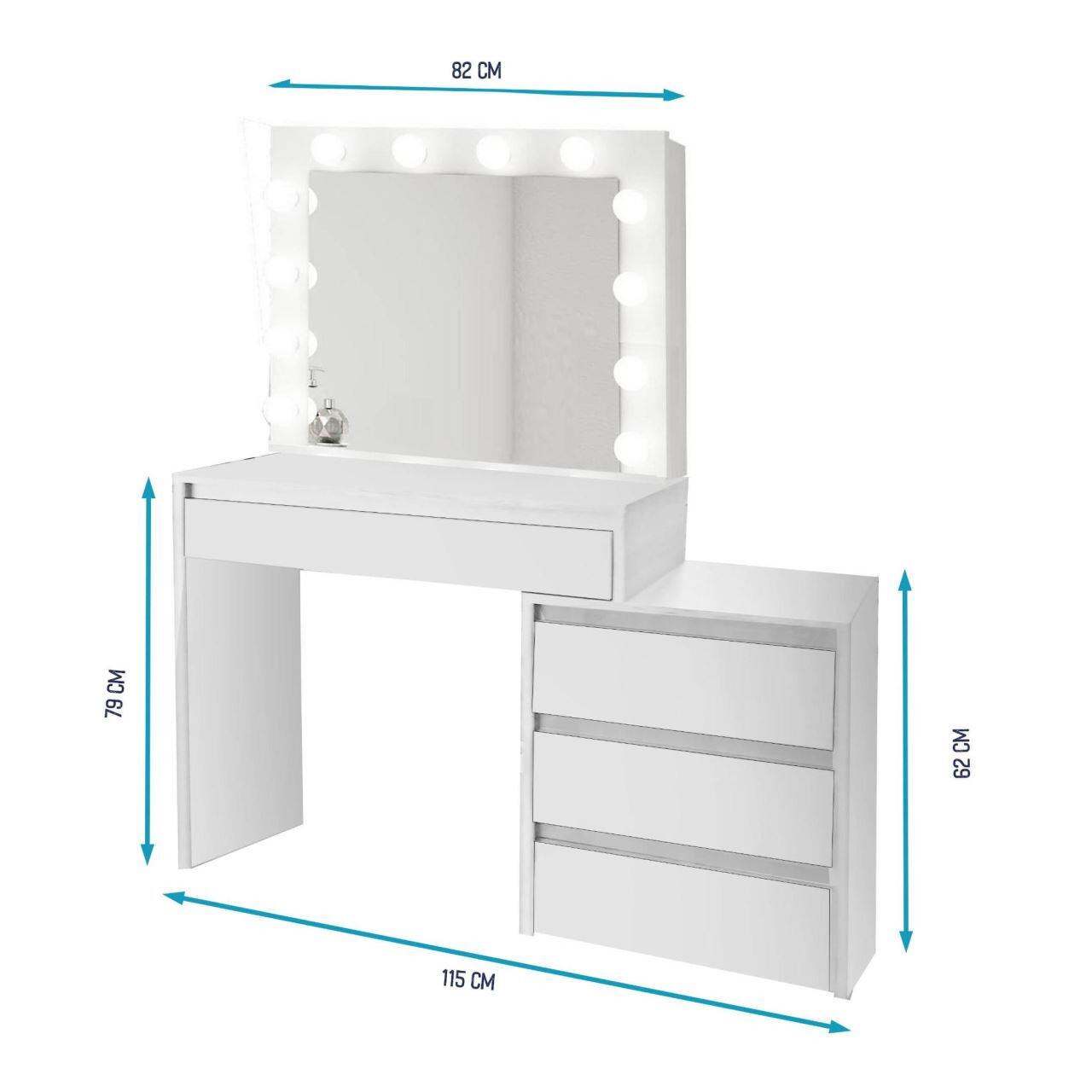 Masa de toaleta alba pentru machiaj cu oglinda si 12 leduri este cu siguranta visul oricarei femei.
