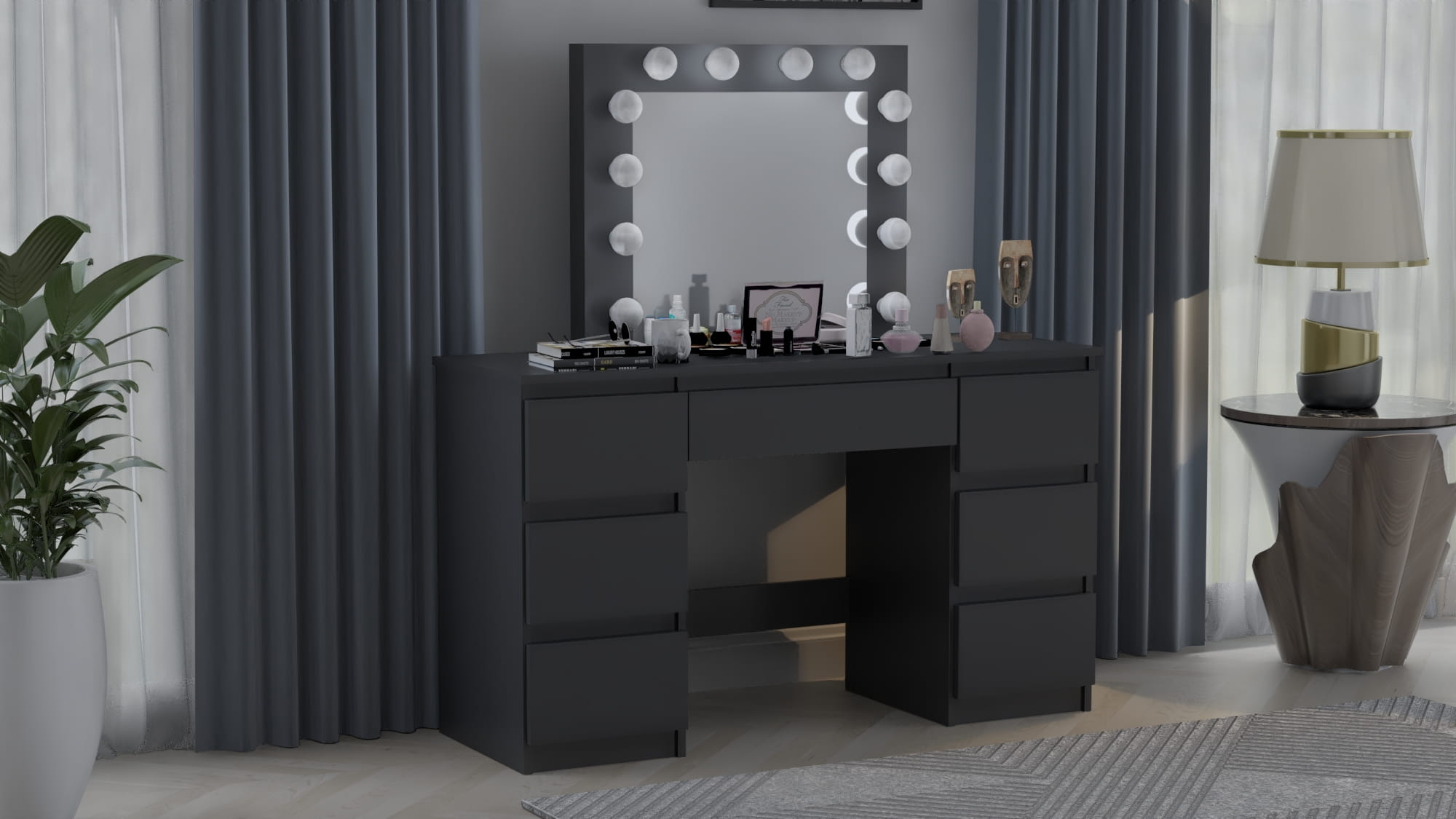 - Cele 7 sertare cu care este dotat mobilierul va ofera un spatiu cu adevarat ofertant pentru toate accesoriile de care aveti nevoie la indemana, cosmetice, instrumente de igiena, etc.