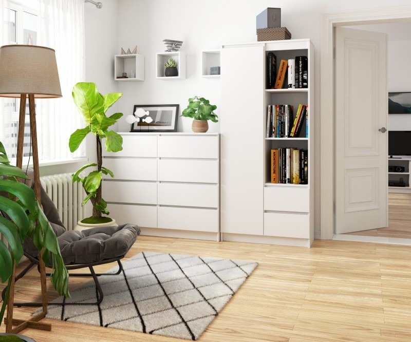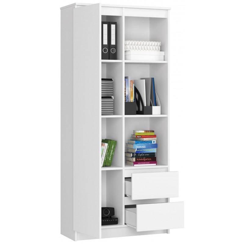 Biblioteca, placa laminata, 2 sertare, 7 rafturi, alb, 80x35x180 cm