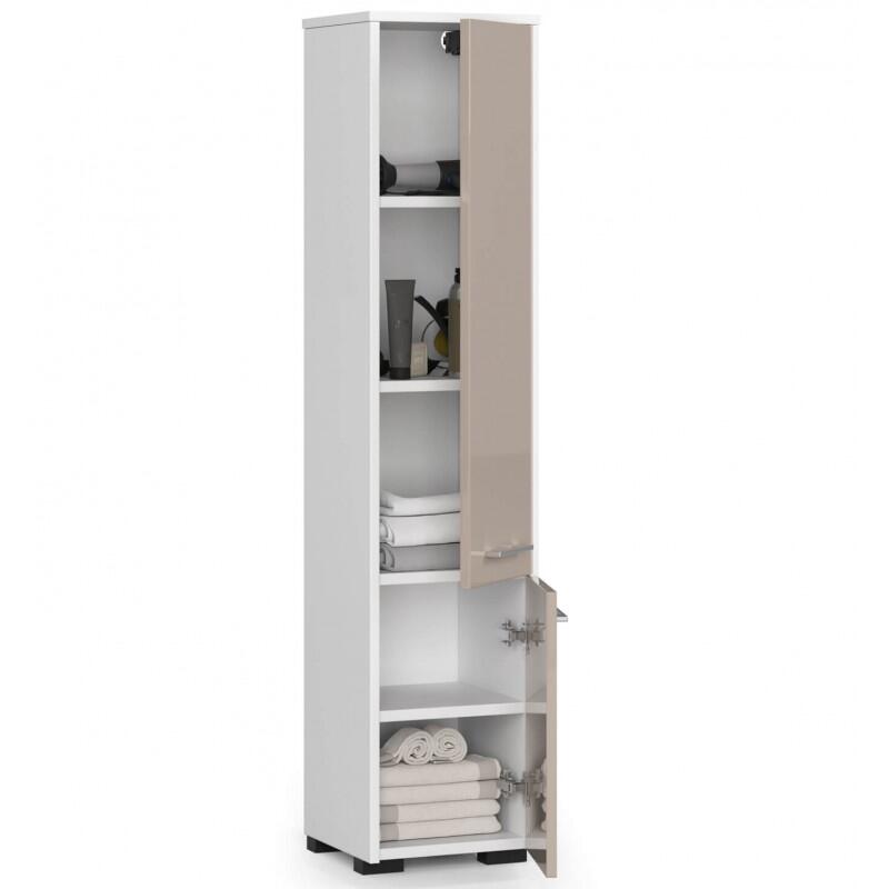Dulap baie, placa laminata, 5 rafturi, 2 usi, alb si cappuccino, 30x30x140 cm