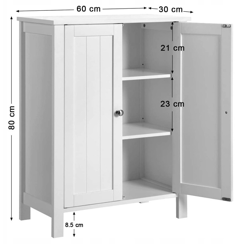 Dulap baie, Vasagle, placa MDF, 2 rafturi interioare, 2 usi, alb, 60x30x80 cm