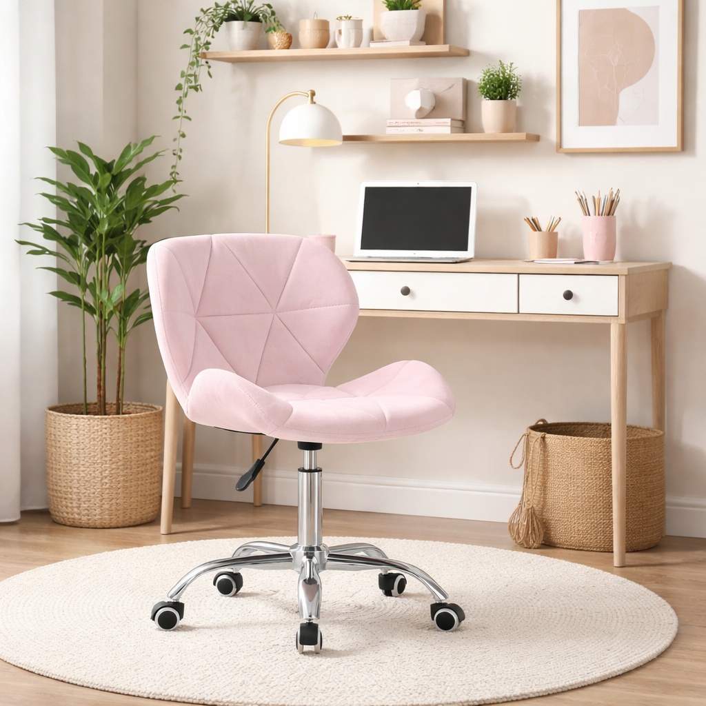 Scaun de birou, Artool, Avola, rotativ, catifea, roz, 46.5x55x86.5 cm