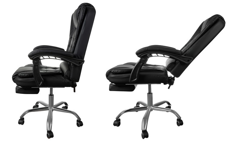 Scaun de birou, cu suport pentru picioare, rotativ, piele ecologica, negru, max 130 kg, 65×102/110 cm