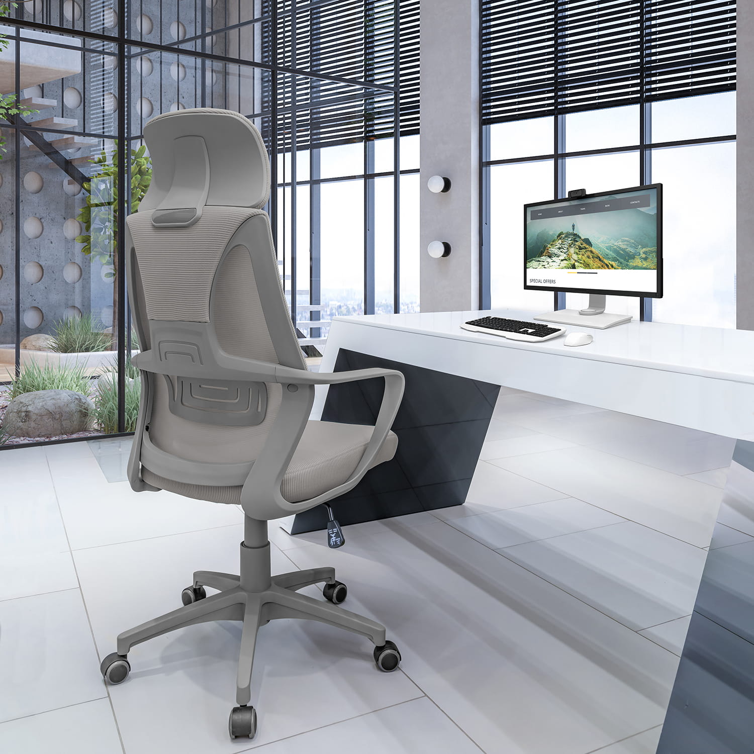 Scaun de birou, Jumi, rotativ, functie tilt, plasa, gri, max 120 kg, 61x55x117/125 cm