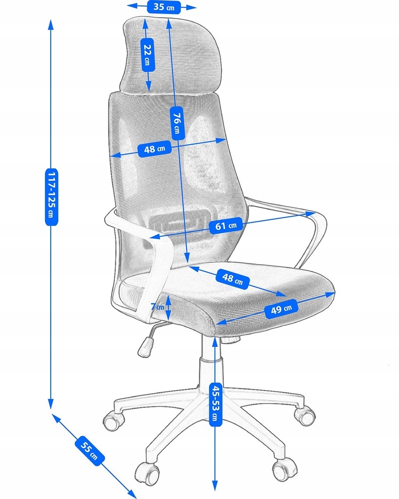 Scaun de birou, Jumi, rotativ, functie tilt, plasa, negru, max 120 kg, 61x55x117/125 cm