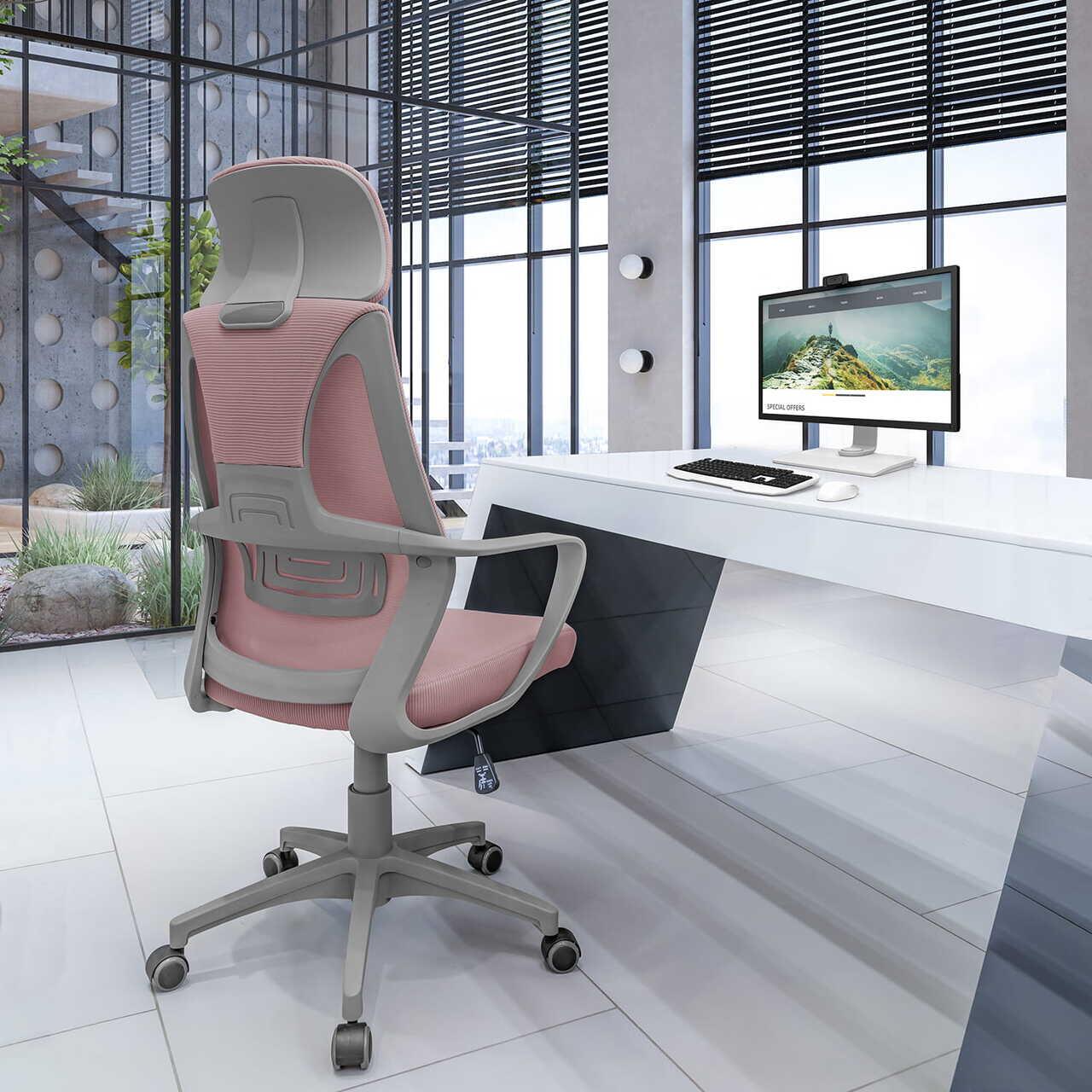 Scaun de birou, Jumi, rotativ, functie tilt, plasa, roz si gri, max 120 kg, 61x55x117-125 cm