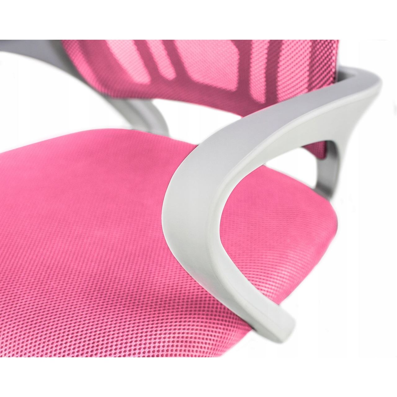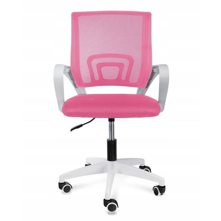 Scaun de birou, rotativ, cu plasa, cotiere, alb si roz, 54x54x95 cm