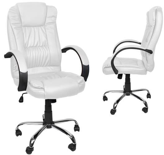 Scaun de birou, rotativ, functie tilt, piele ecologica, otel, alb, max 130 kg, 60x60x113/123 cm, Malatec