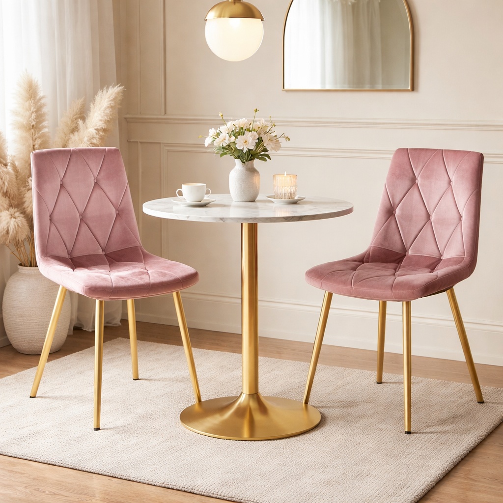 Scaun bucatarie/living, Artool, Libra, catifea roz, picioare metal auriu, 45x54x86.5 cm