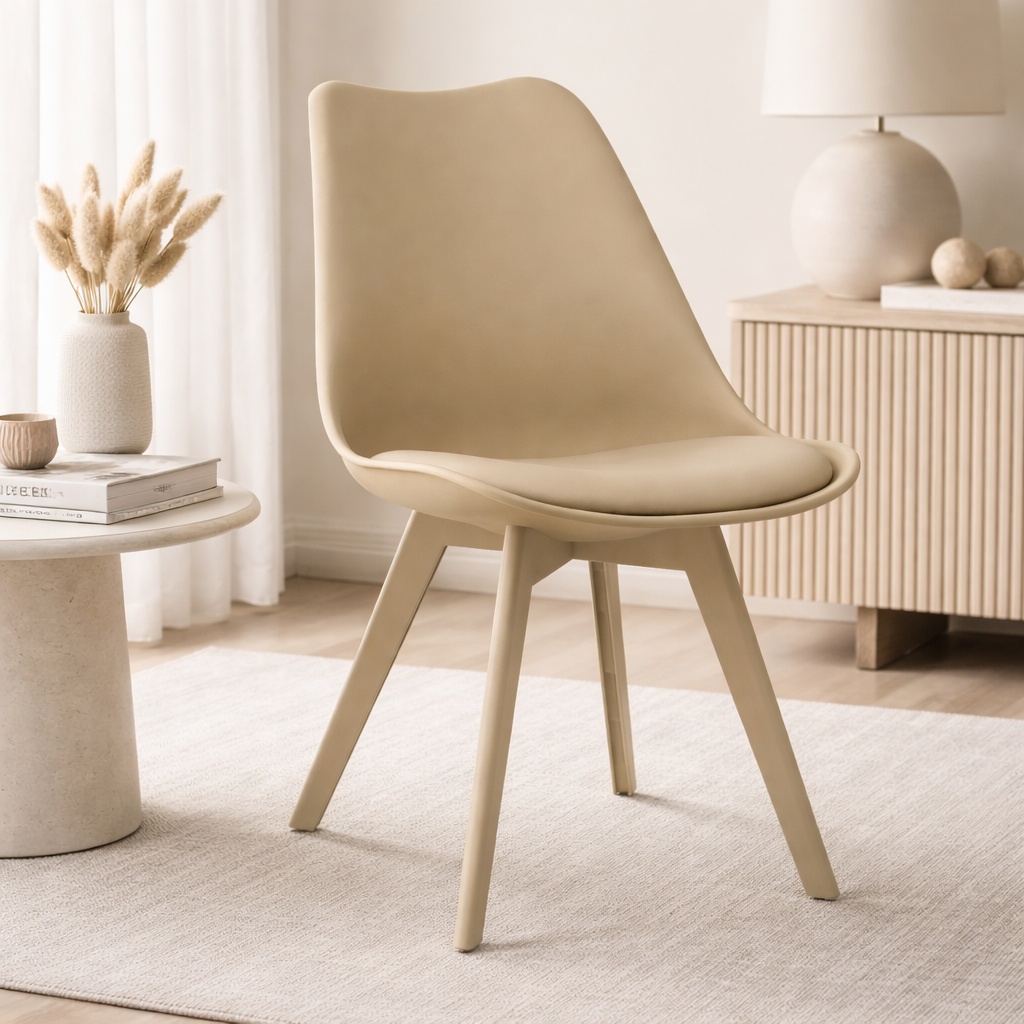 - Reprezinta o alegere practica si moderna pentru orice locuinta. Stilul sau simplu si elegant, se potriveste usor in orice tip de amenajare, fie ca vorbim despre un decor contemporan, nordic sau chiar industrial. Fiind complet colorat intr-o singura nuanta, scaunul devine un element unitar si estetic, aducand armonie si coerenta in incapere.