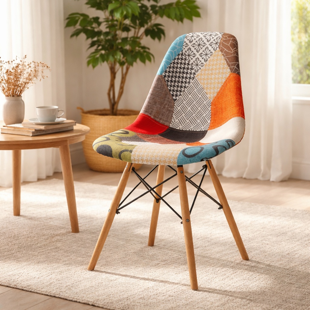Scaun stil scandinav, Artool, Seul, textil, lemn, mozaic multicolor, 46.5×56.5×82.5 cm