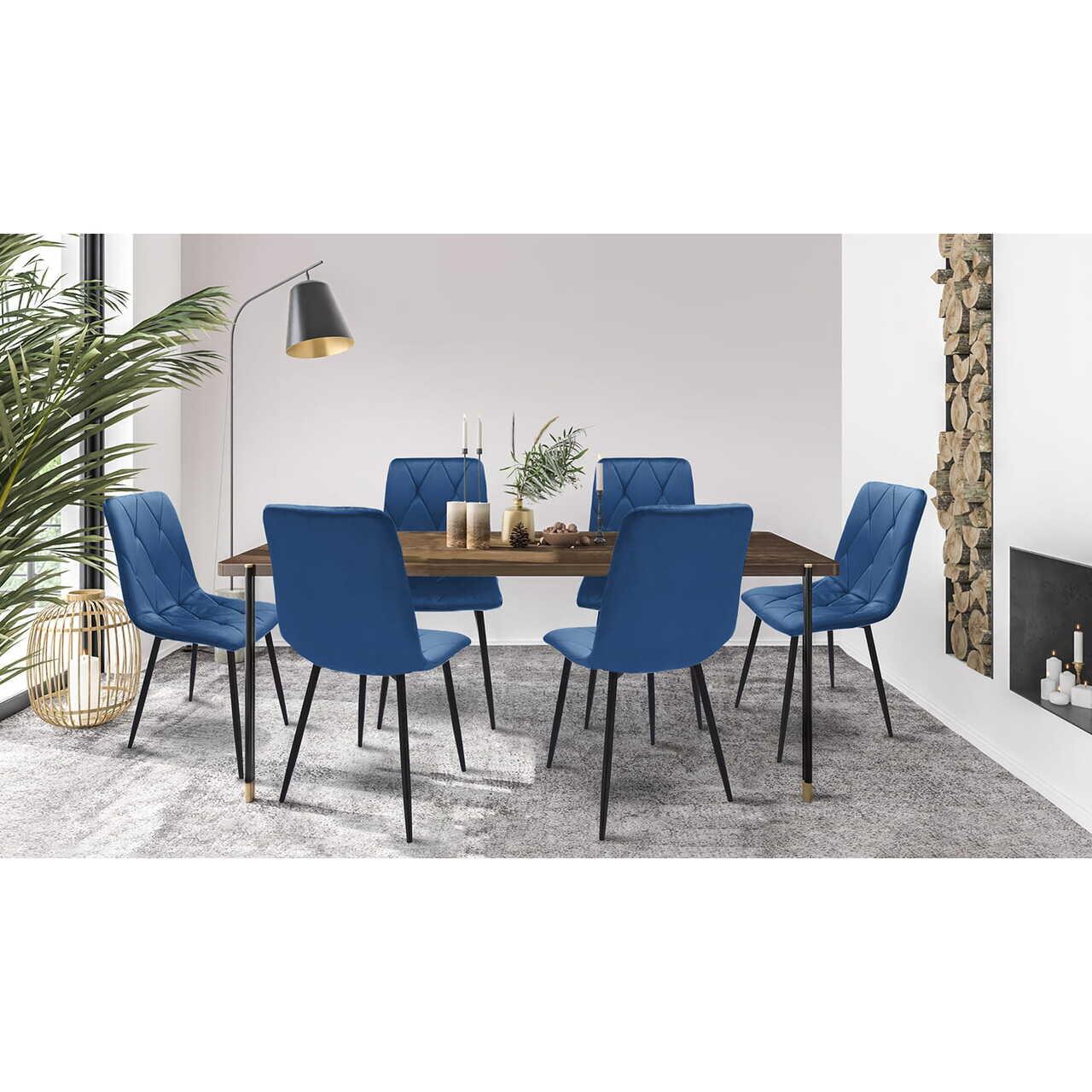 Scaun stil scandinav, matlasat, catifea, metal, bleumarin, 44x52x89 cm, Piado