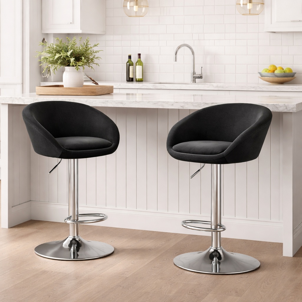 Scaun de bucatarie/bar, Artool, East, rotativ, catifea, negru si argintiu, 53x46x81-103 cm