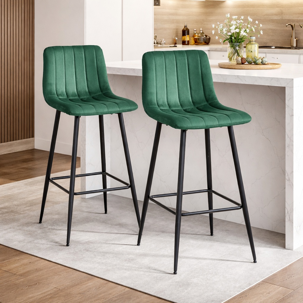 Scaun de bucatarie/bar, Artool, Pozza, catifea, otel, verde si negru, 43x35x104 cm