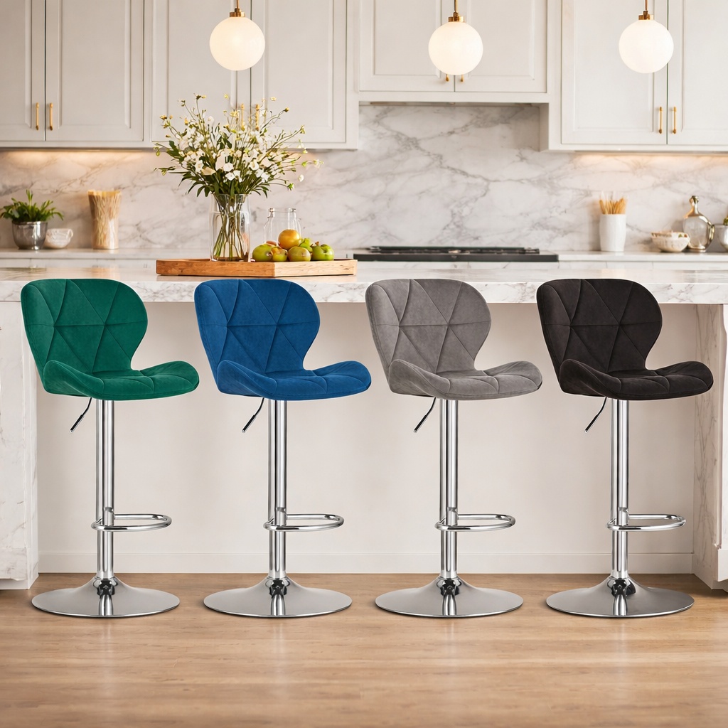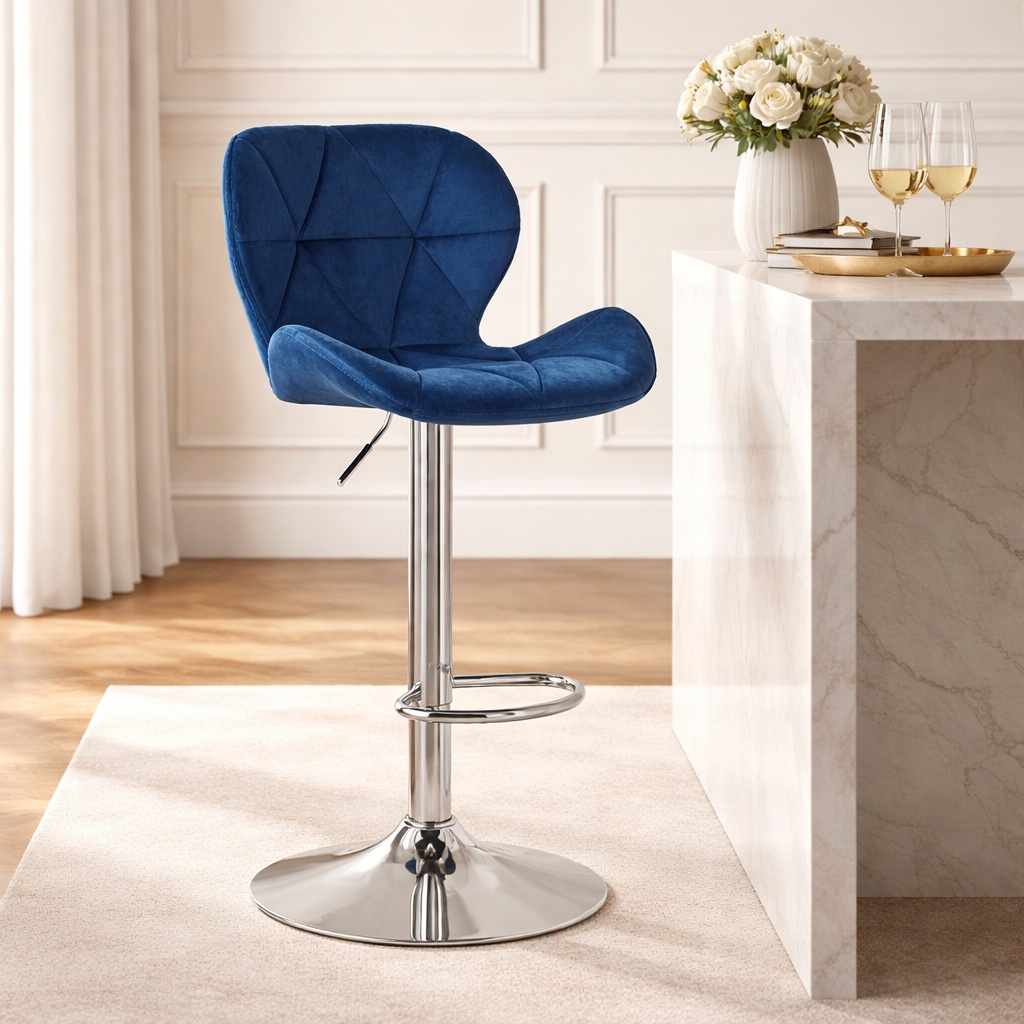 Scaun de bucatarie/bar, Artool, West, rotativ, catifea, bleumarin si argintiu, 46×48.5×90-111 cm