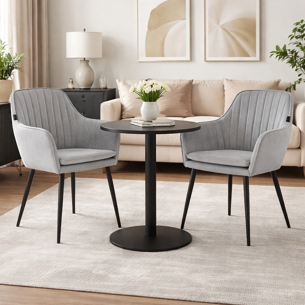 Scaun stil scandinav, Artool, Lugo, catifea, metal, argintiu si negru, 57.5×56.5×86.5 cm