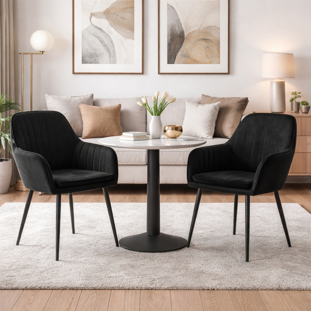 Scaun stil scandinav, Artool, Lugo, catifea, metal, negru, 57.5×56.5×86.5 cm