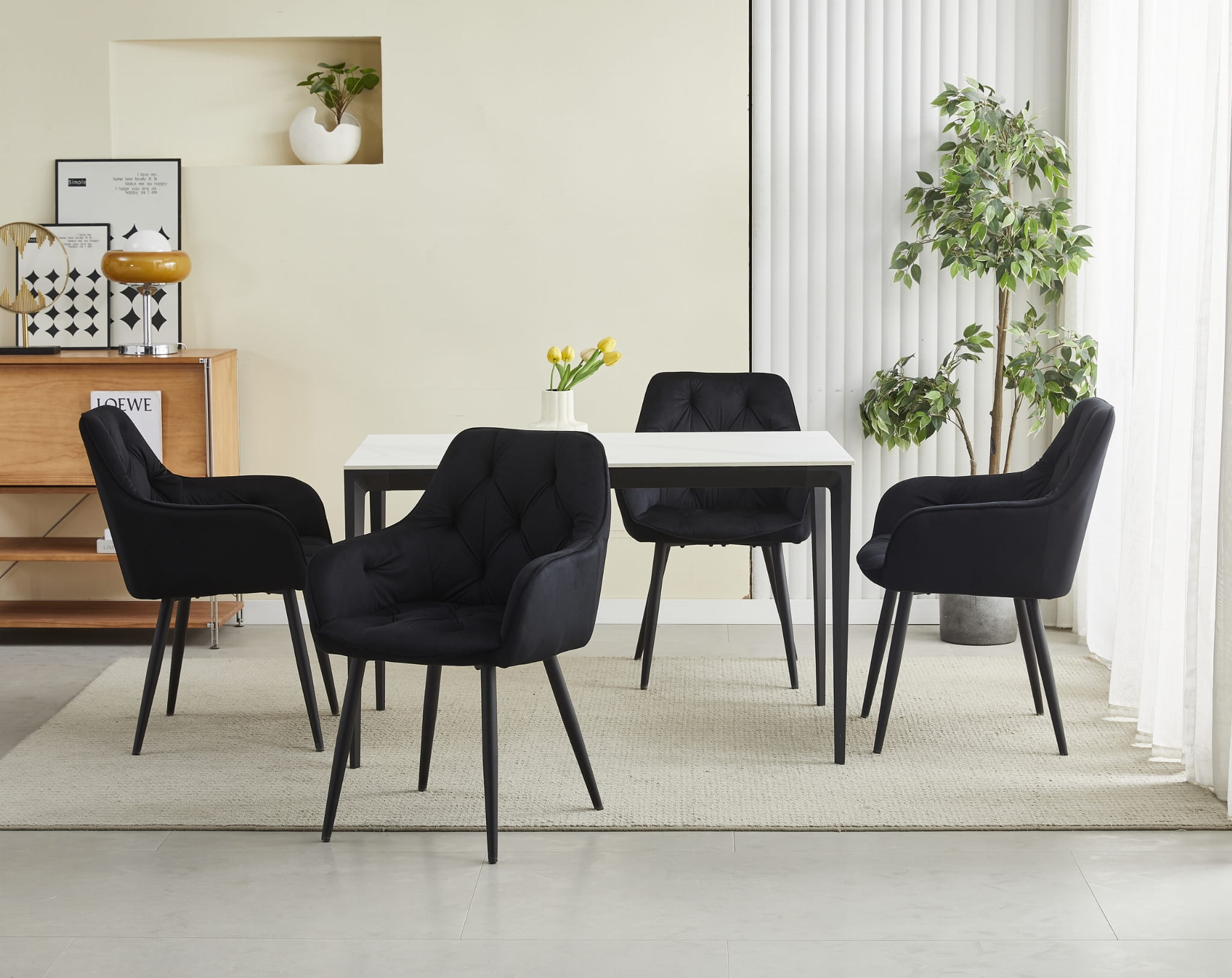 Scaun stil fotoliu bucatarie/living, Artool, York, catifea, metal, negru, 56x62x83.5 cm