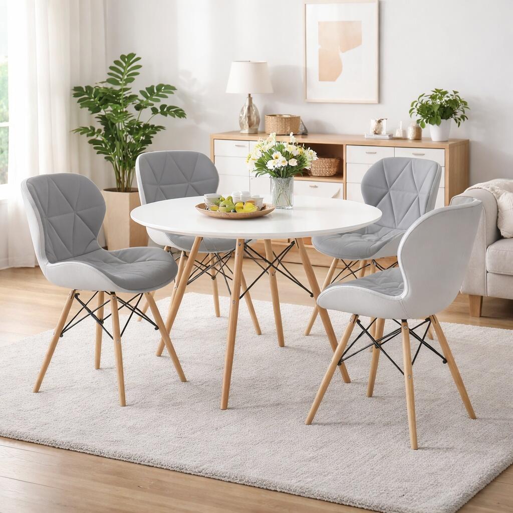 Scaun stil scandinav, Artool, Lago, piele ecologica, lemn, gri si alb, 47x52x73 cm