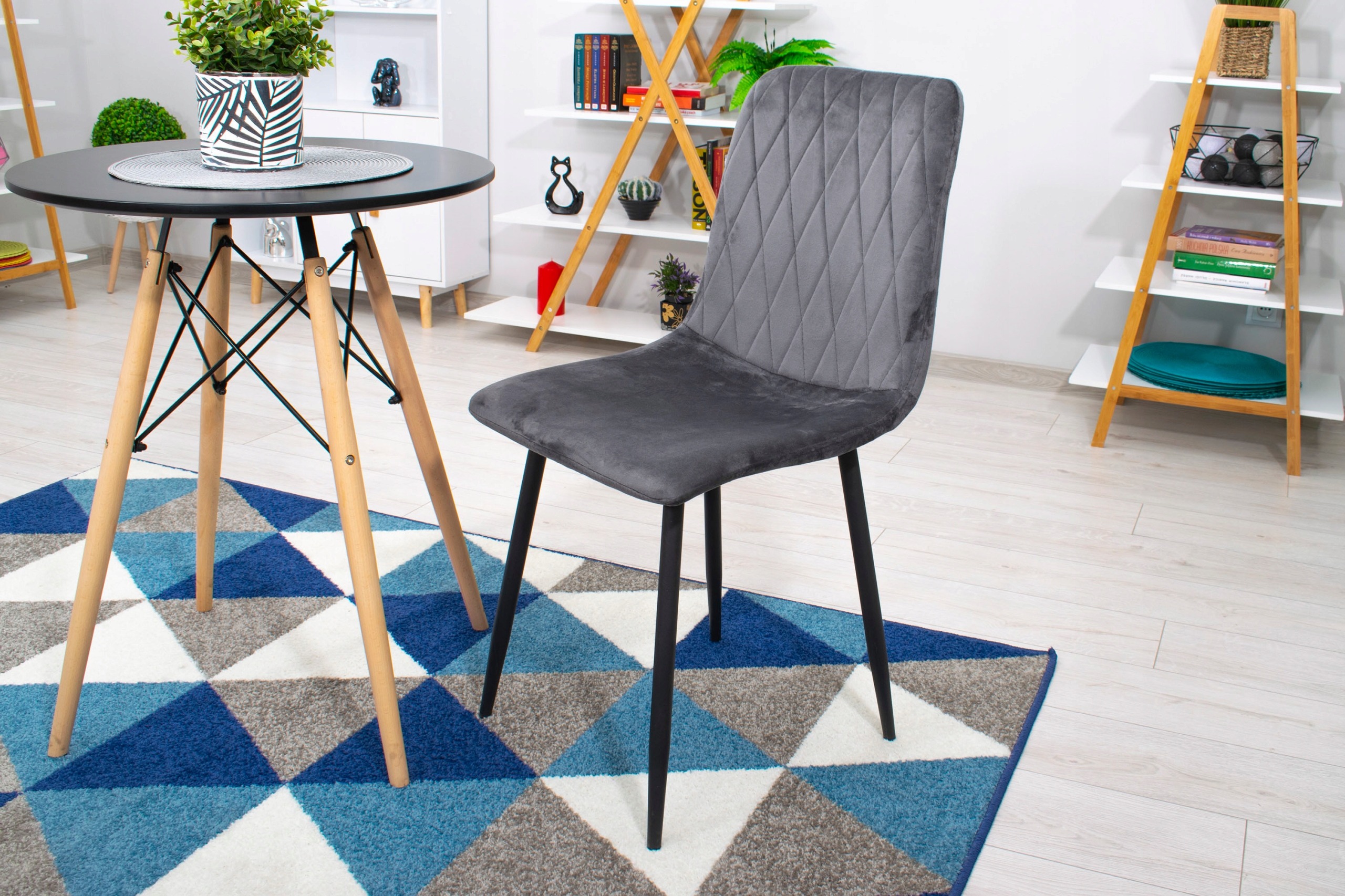 Scaune stil scandinav, set 4 buc, Artool, Turin, catifea, metal, gri si negru, 44.5x53x88.5 cm