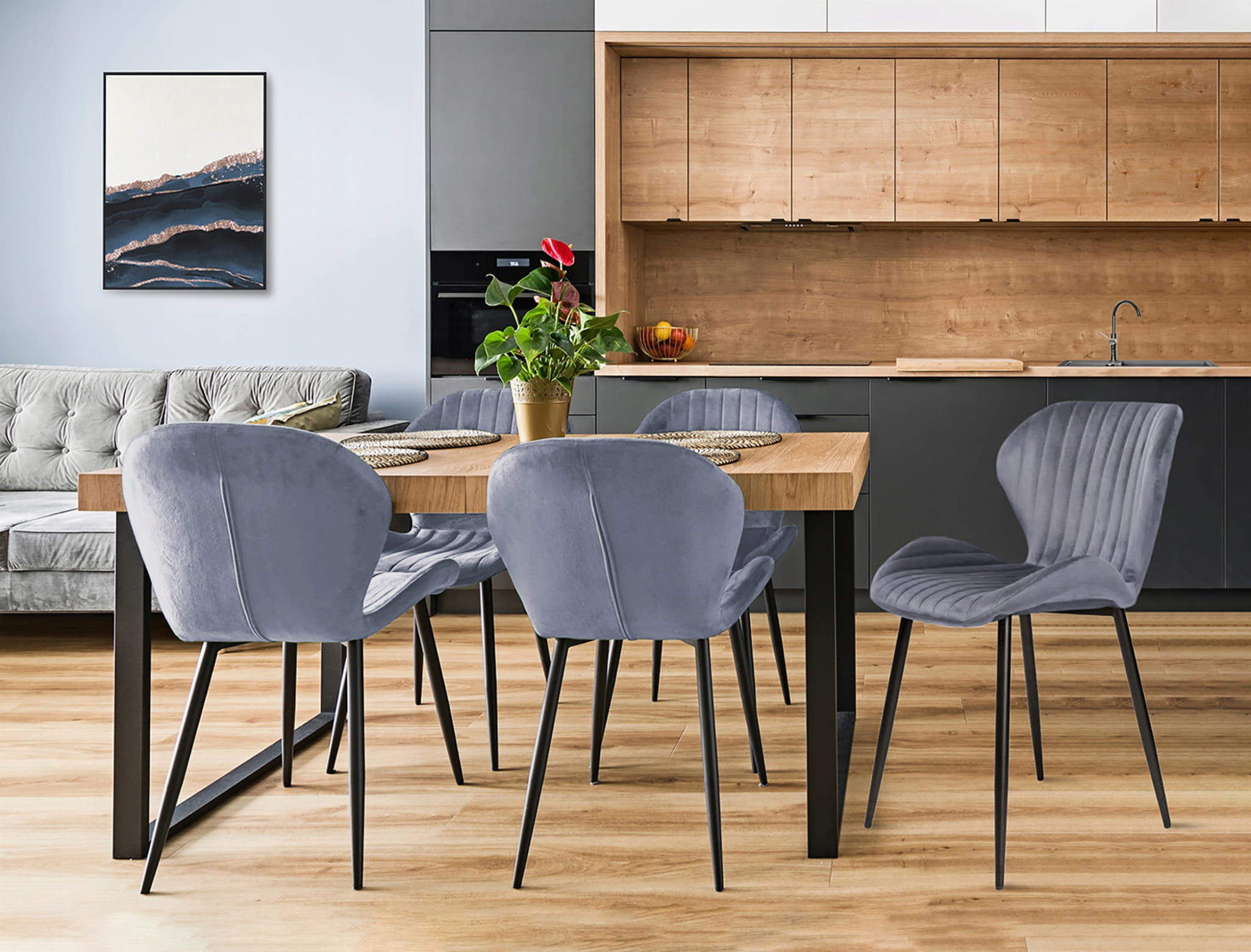 Scaune bucatarie/living, set 4 buc, Jumi, Veira, catifea, metal, gri, 52x56x85 cm