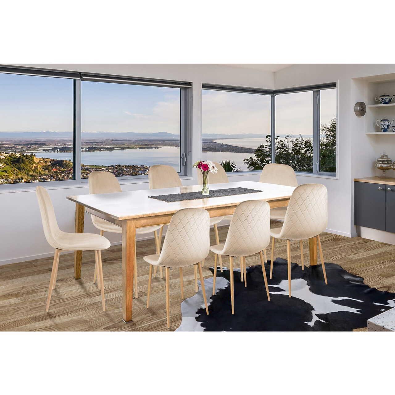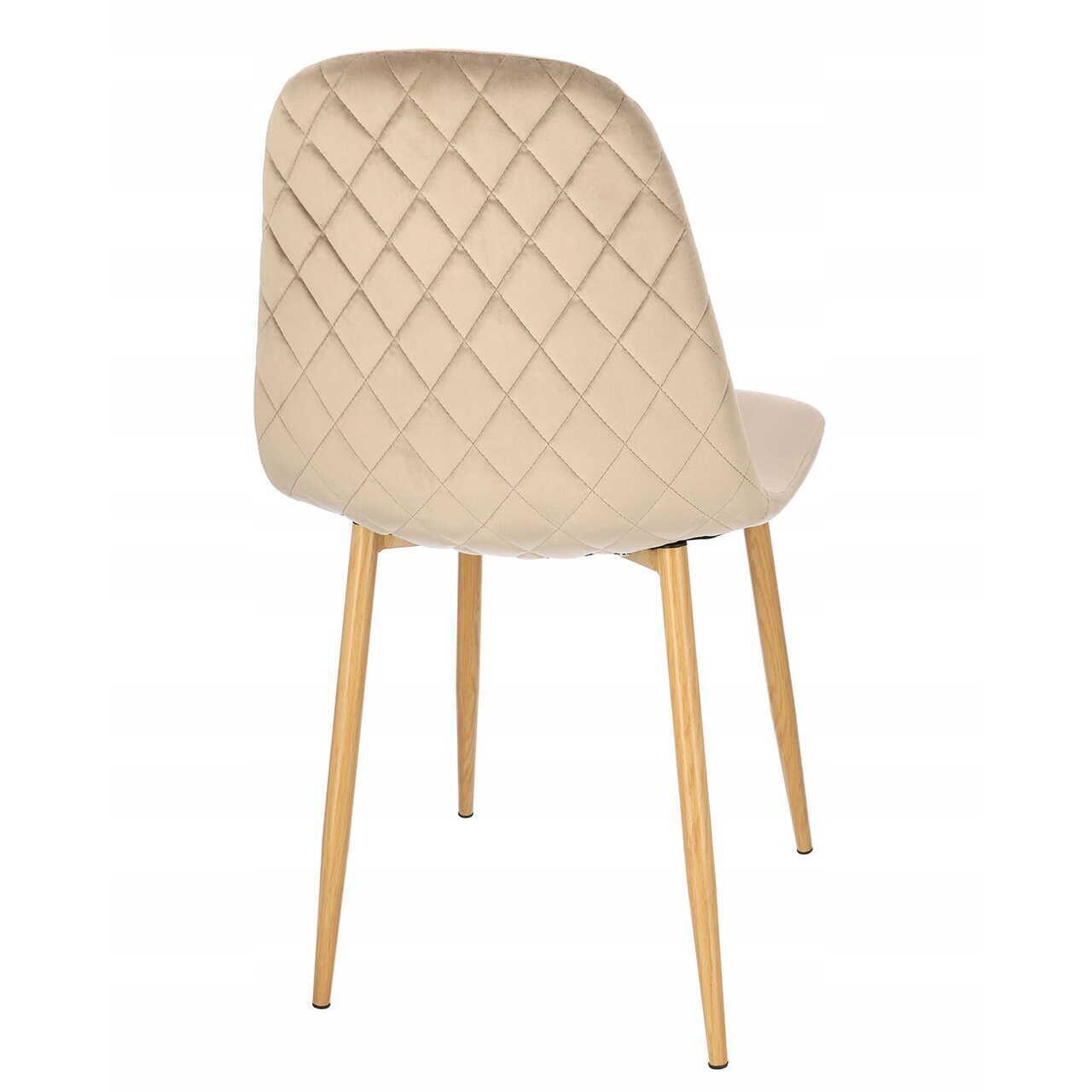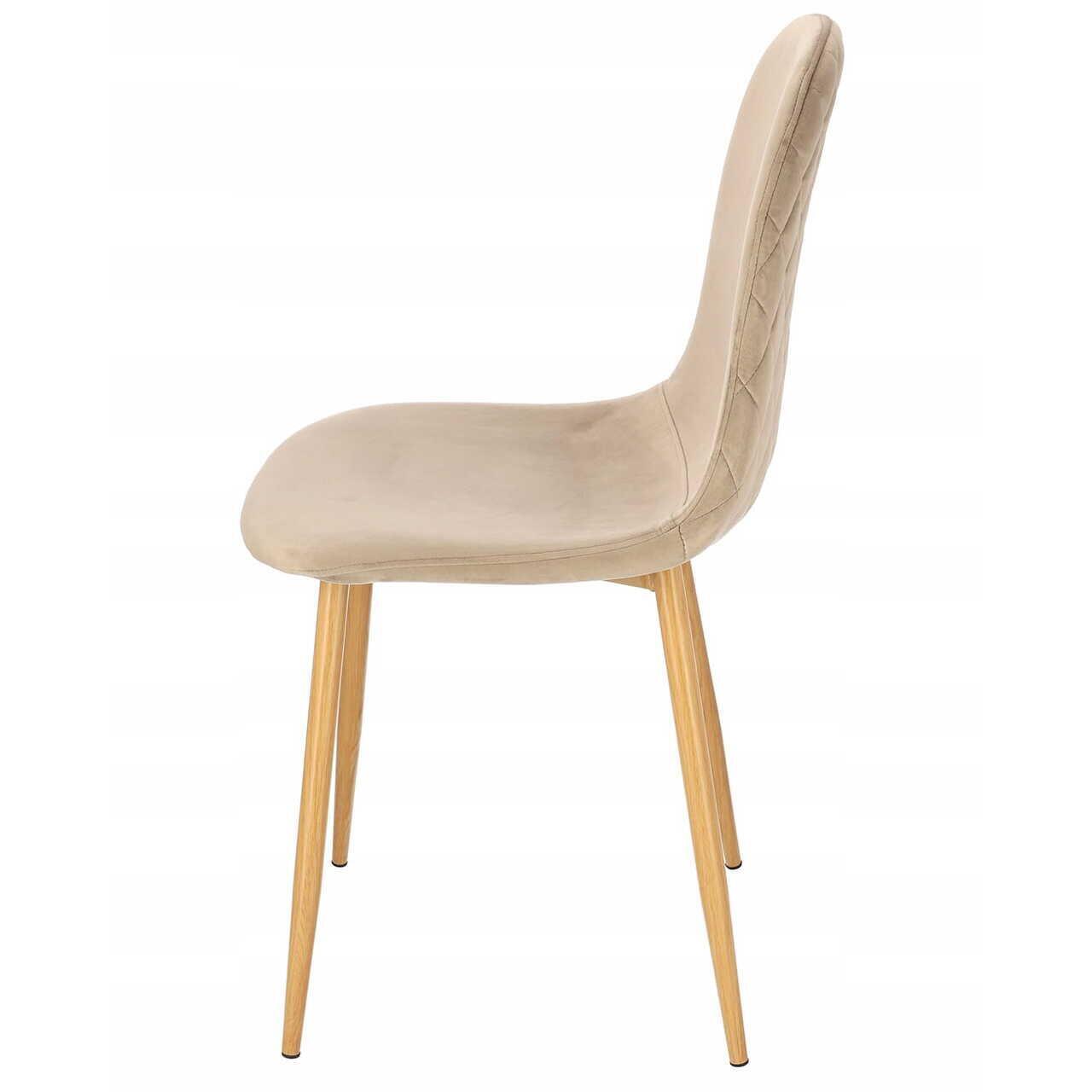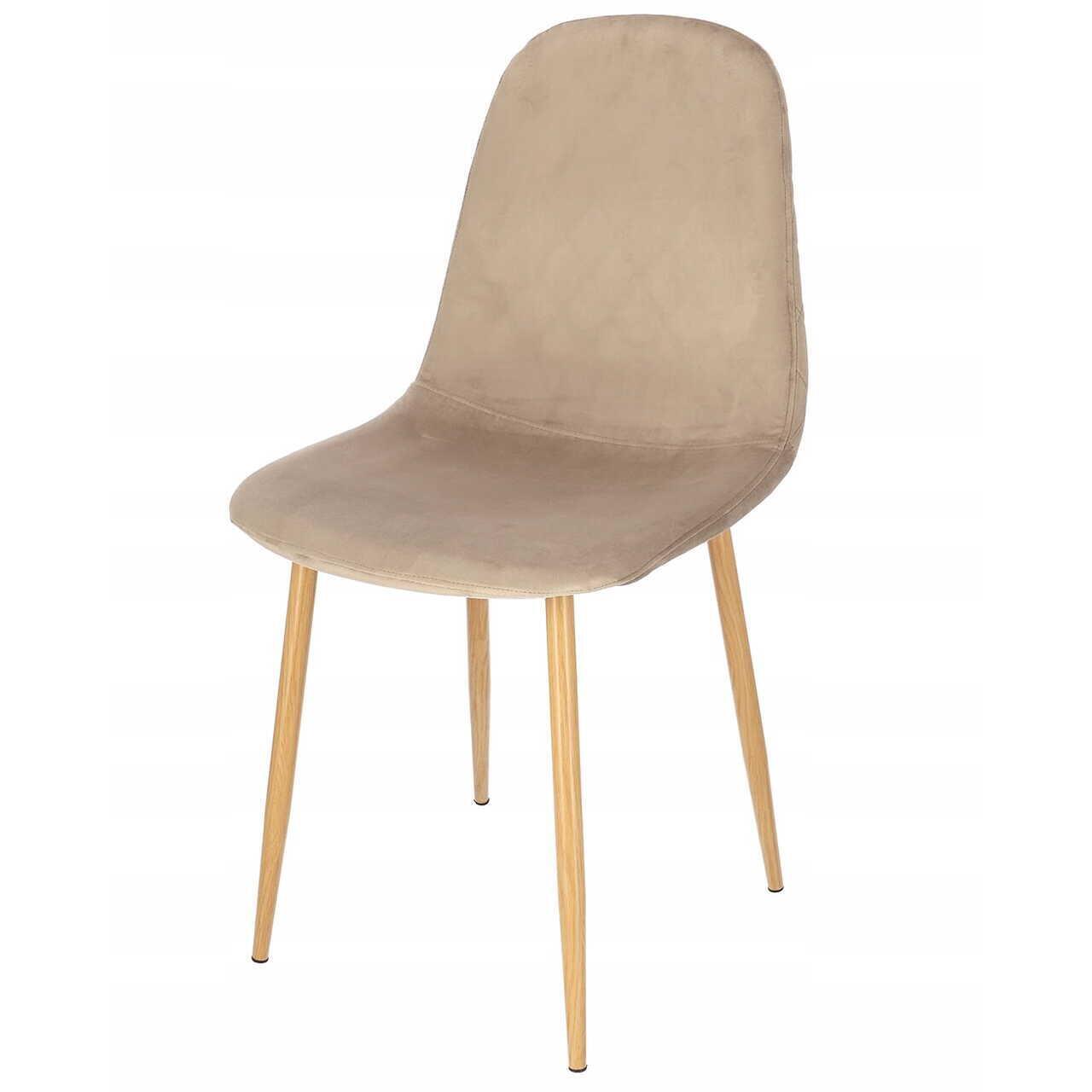 Set 4 scaune bucatarie/living, Jumi, Vigo, catifea, metal, bej si natur, 44x52x85 cm