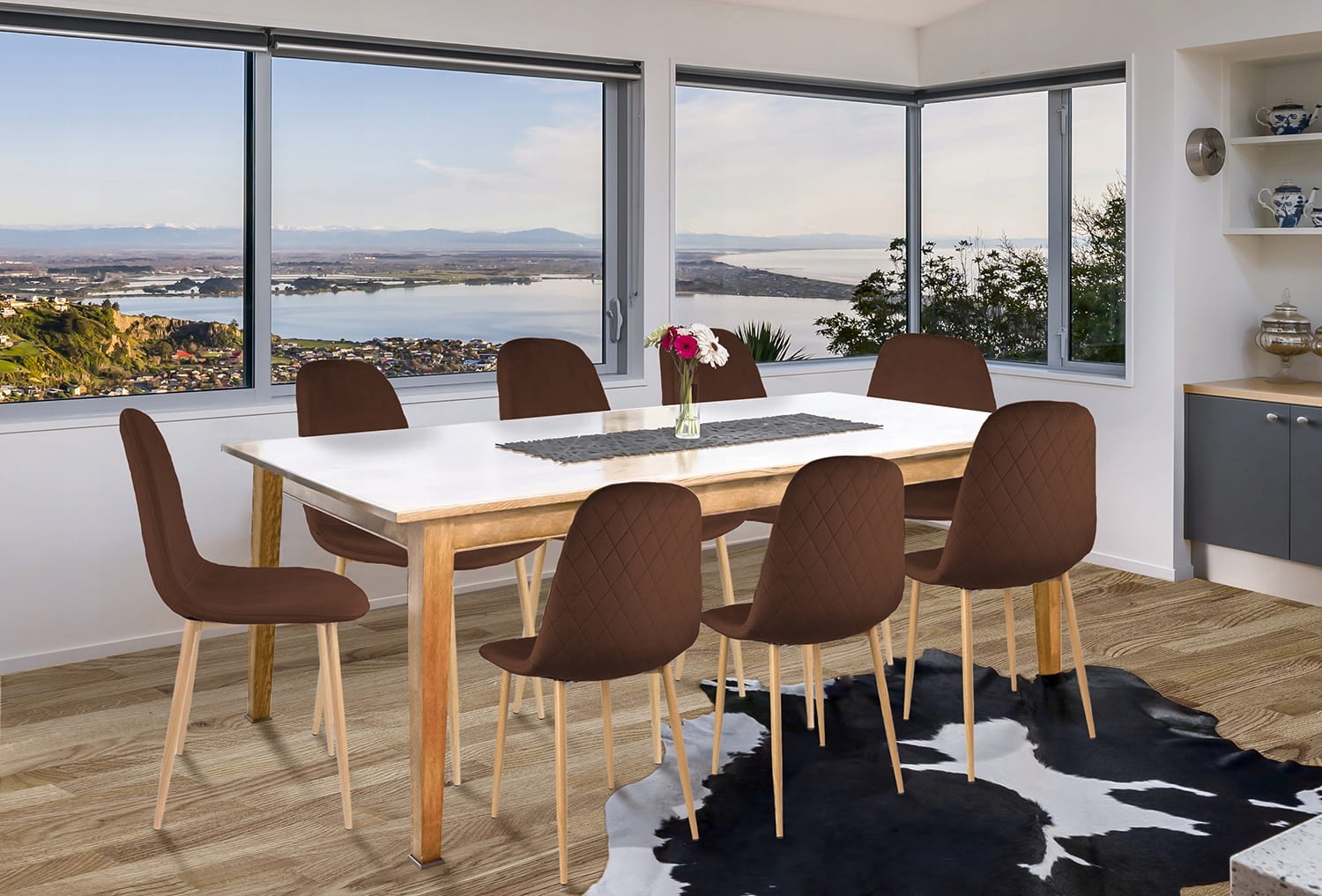 Scaune bucatarie/living, set 4 buc, Jumi, Vigo, catifea, metal, maro, 44x52x85 cm