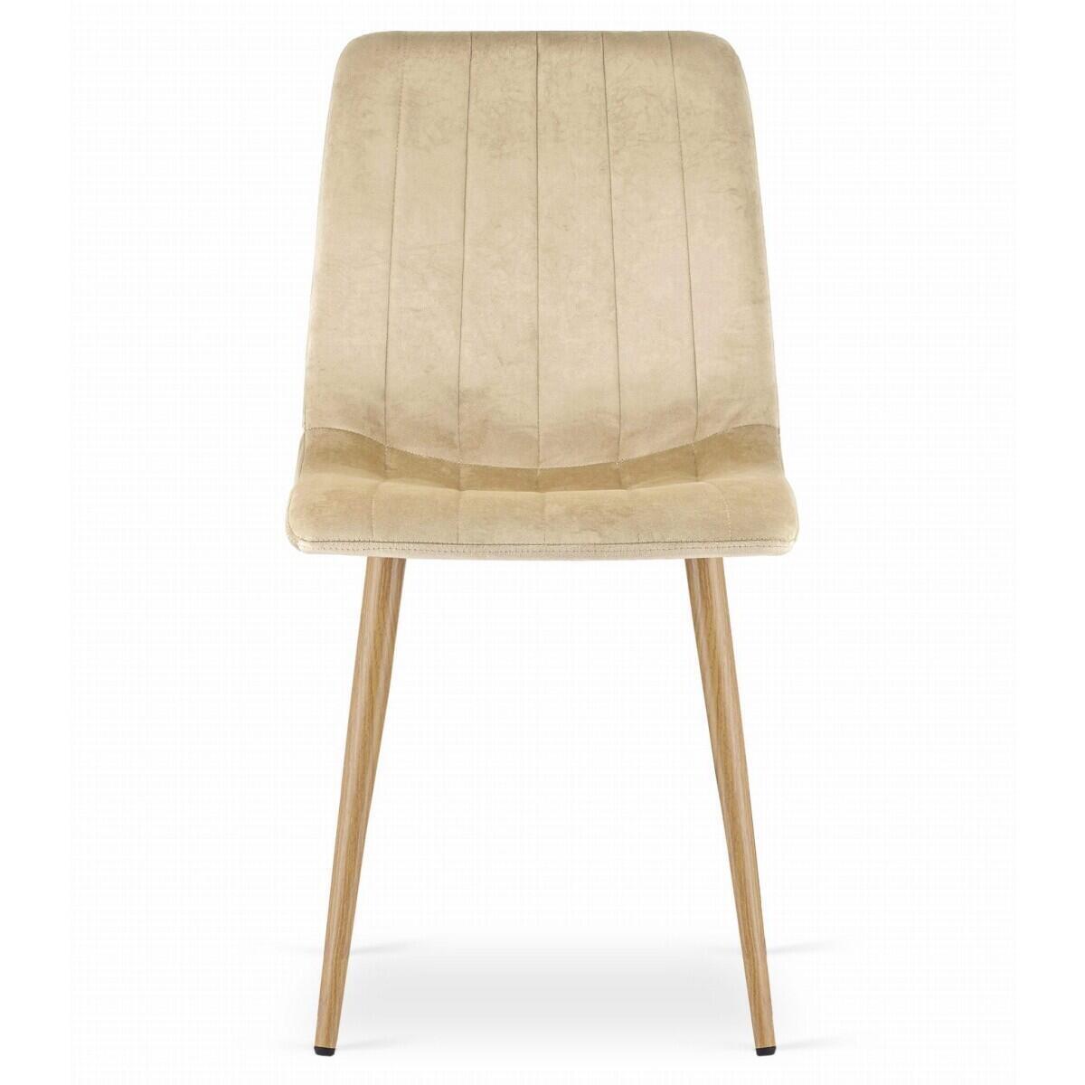 Set 4 scaune bucatarie/living, Lava, catifea, metal, bej si natur, 45x55x86 cm