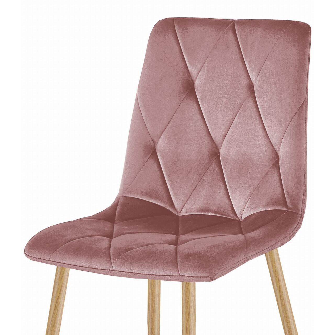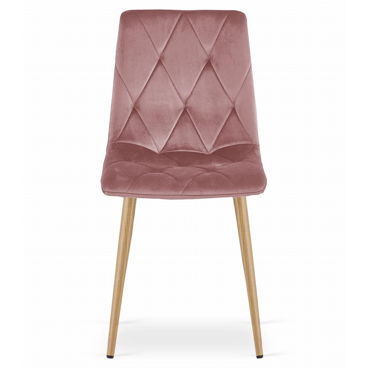 Set 4 scaune bucatarie/living, Libra, catifea, metal, roz si natur, 45x54x86.5 cm