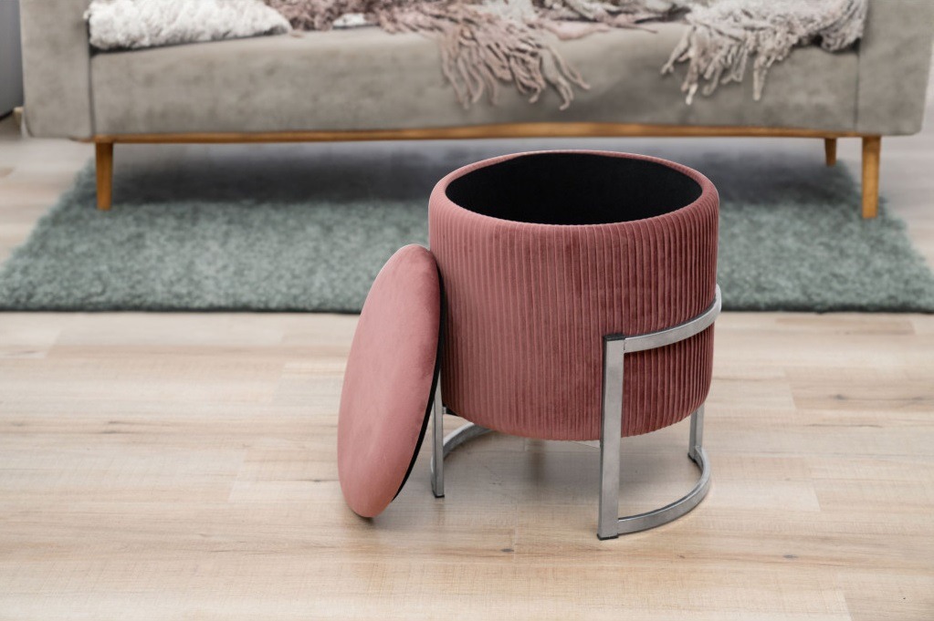 Taburet, rotund, cu spatiu depozitare, catifea, roz, 80 kg, 40×46 cm, Porto, Akord