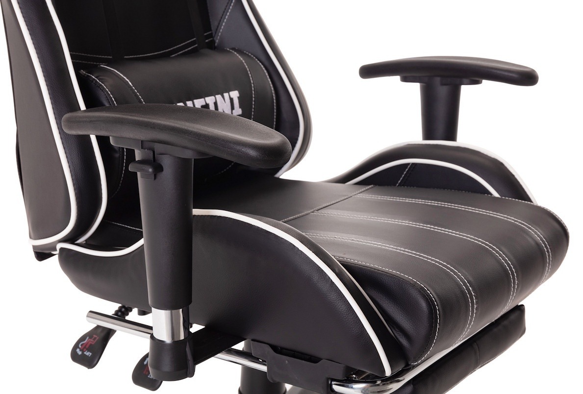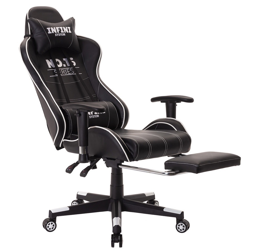 Scaun de gaming, cu suport de picioare, negru-alb, Infini no.16