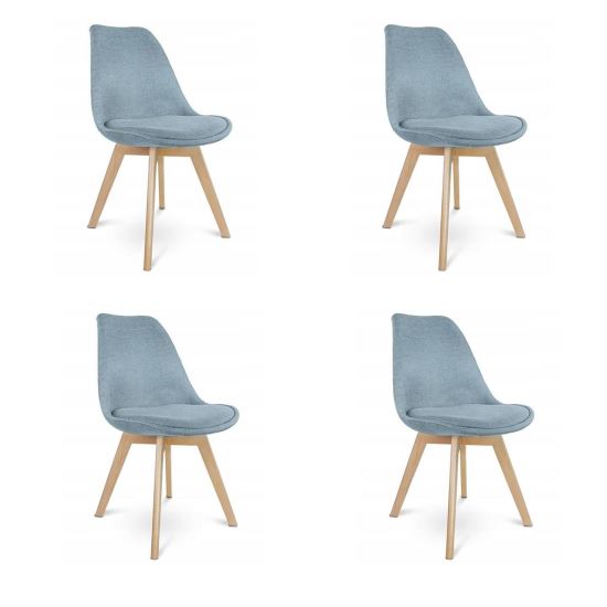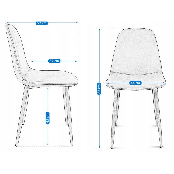 In exterior, exista o matlasare delicata si cusaturi cu fir, iar in interior materialul este neted. Scaunul are spatar rotunjit si picioare metalice cu imitatie de lemn, care creeaza o baza stabila.