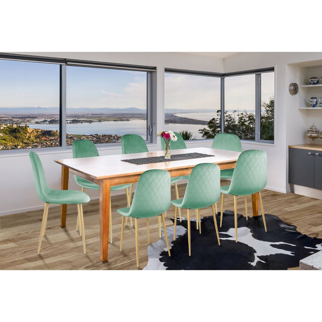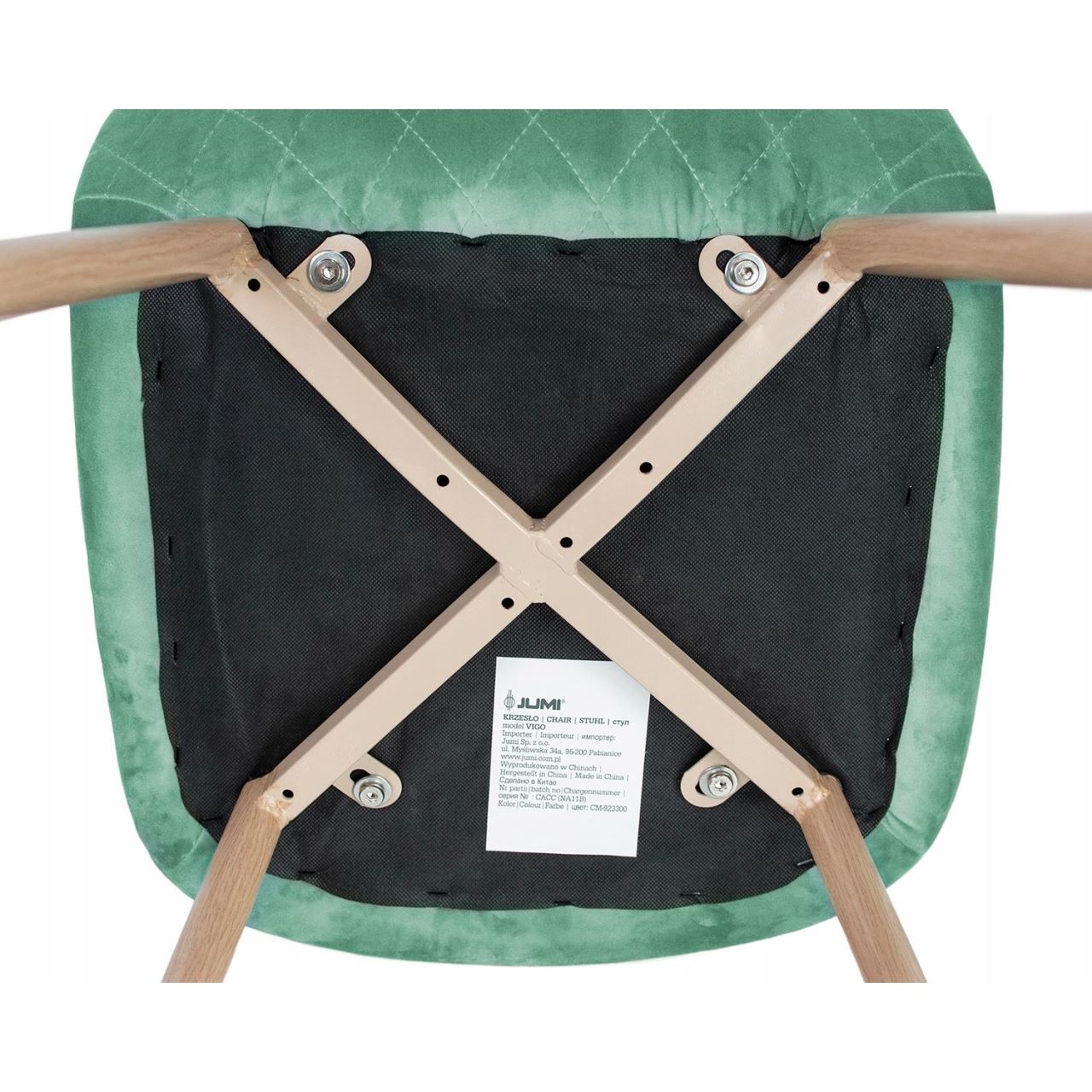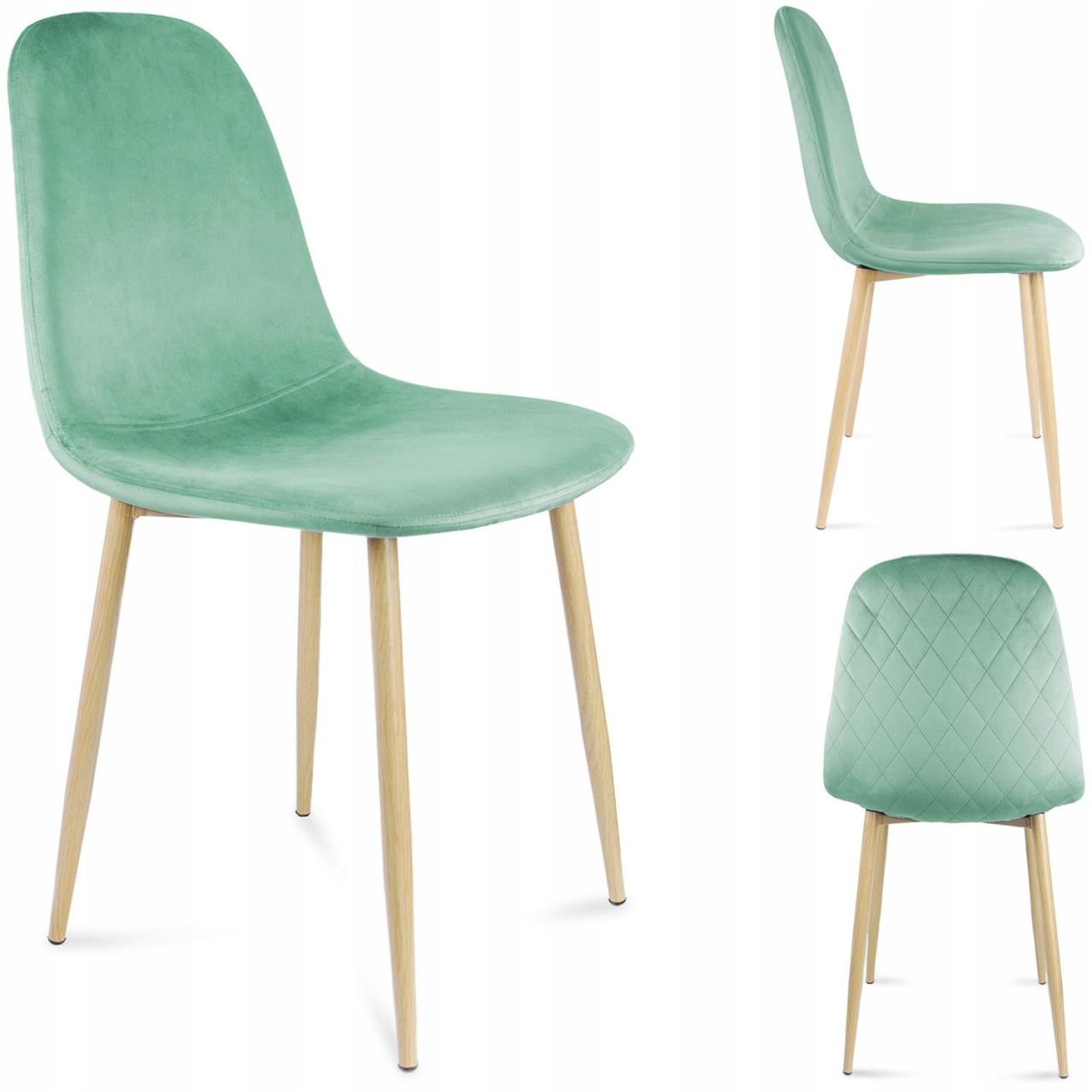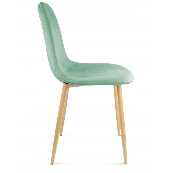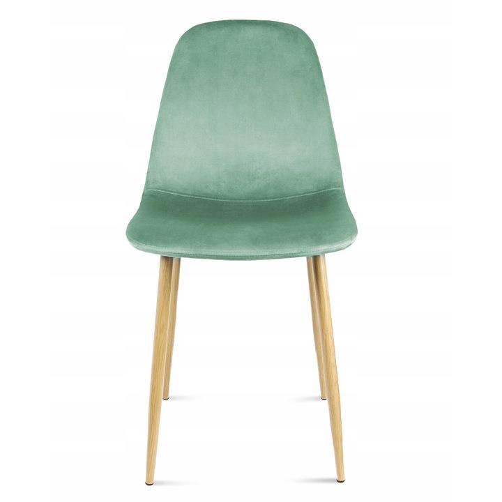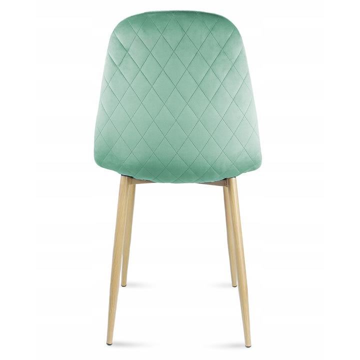 Scaun stil scandinav, catifea, model cusatura pe spate, verde si natur, max 100 kg, 44x52x85 cm, Vigo