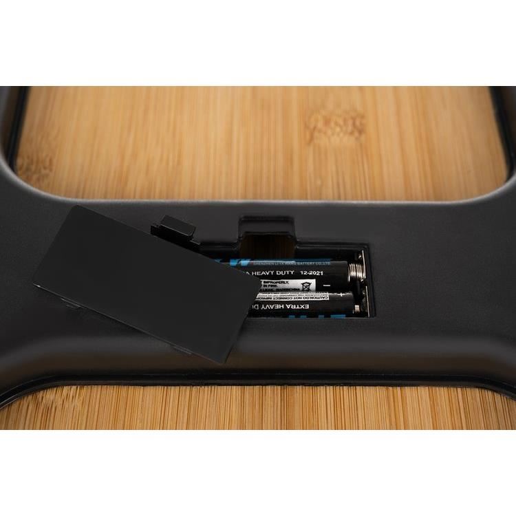 - OPRIRE AUTOMATA – cantarul LED din bambus are o optiune de oprire automata dupa 8 secunde, ceea ce va permite sa economisiti energie si sa cresteti confortul utilizarii. Dispozitivul este alimentat de 2 baterii AAA (incluse in set) si are un indicator de incarcare a bateriei.