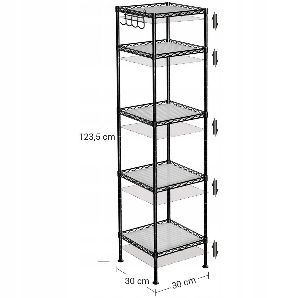 Raft pentru baie, Artool, otel si PP, cu carlige, 5 polite, negru, 30x30x123.5 cm