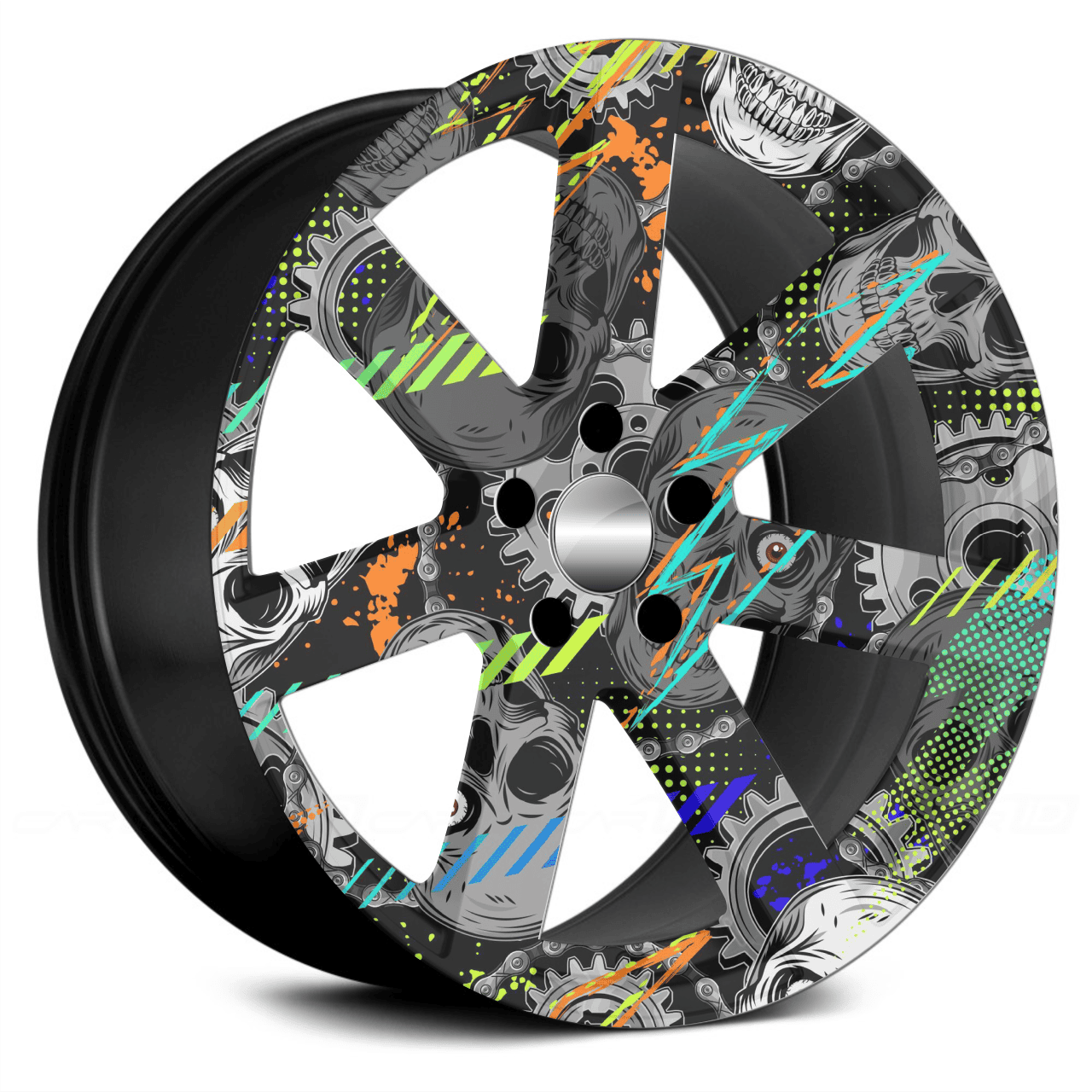 Set 4 Folii Imprimate Outdoor cu EcoSolvent, autoadezive, pentru decorarea jantelor auto, dimetru 60 cm, model FJT-20