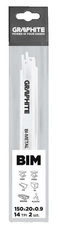 Panza, lama, fierastrau tip sabie, pentru lemn, metal, BIM, 14 TPI, set 2 buc, 150 mm, Graphite